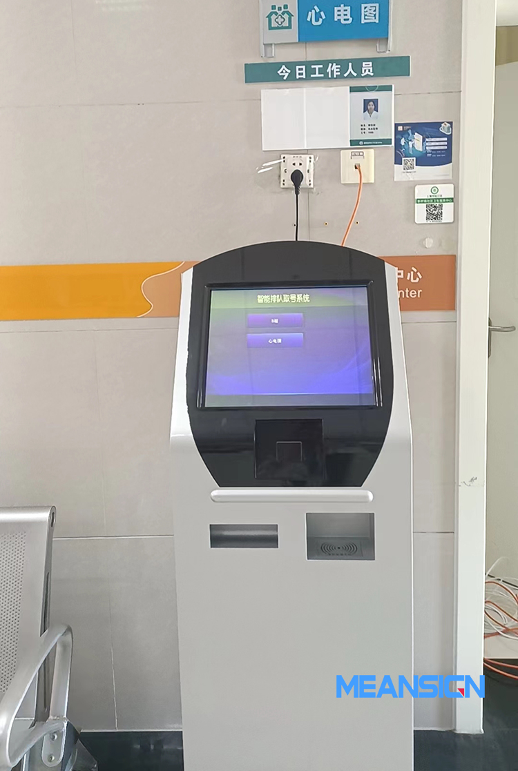 在科室服務大廳,擺放觸摸屏自助排隊取號機,有B超/心電圖選項,患者根據個人情況,點擊取號,拿到號票在等候區等待系統叫號即可。叫號顯示屏實時顯示患者的排隊信息,防止過號,同時系統會根據取號順序,依次進行語音呼叫,患者聽到叫號后前往就診。
